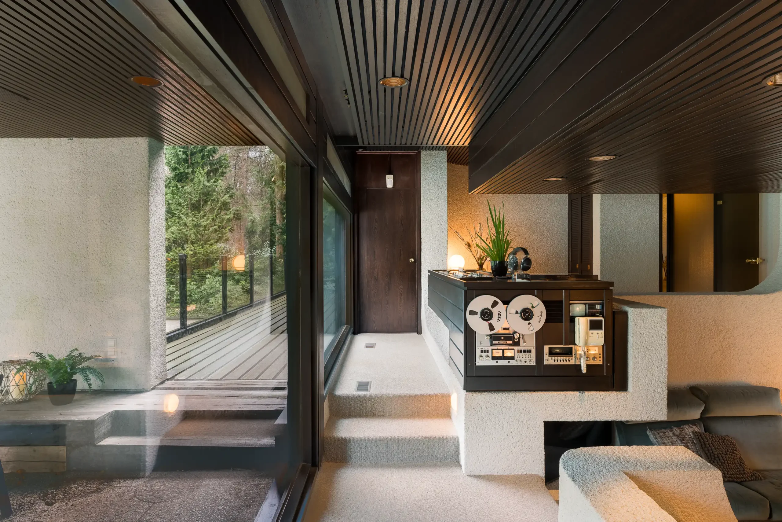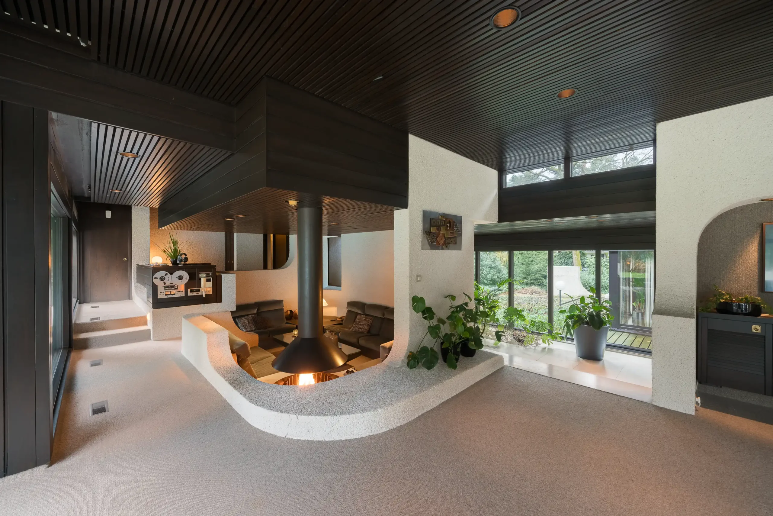 Kern van huis Siesling zijn de zitkuil met open haard en het er naast gelegen, voor die tijd uiterst omvangrijke en geavanceerde, Hi-Fi meubel met een ingebouwde Quadrafonische Pioneer geluidsinstallatie. Een groot aantal ruimten in het huis en de zithoek op het terras is voorzien van speakers die vanaf het Hi-Fi meubel afzonderlijk bediend kunnen worden. Ze zijn weggewerkt achter de plafonds. De zitkuil in de woonkamer is voorzien van een op maat gemaakte open haard met ronde stookplaats en rookvang. De open haard kan middels een elektrisch systeem in hoogte versteld worden zodat deze vanuit verschillende punten in de leefruimte ervaren kan worden.